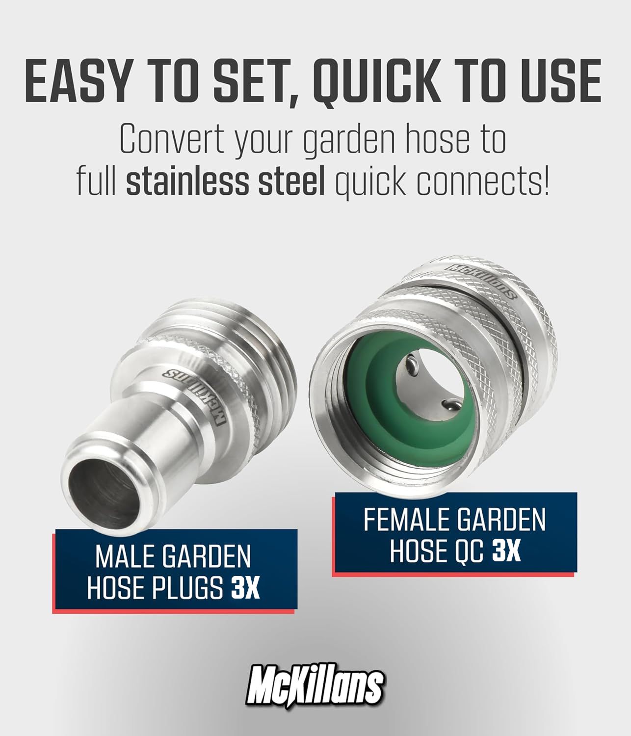 ✅ The Complete Solution: Convert your garden hose, spray gun and sprinklers to full stainless quick connects, in one kit.